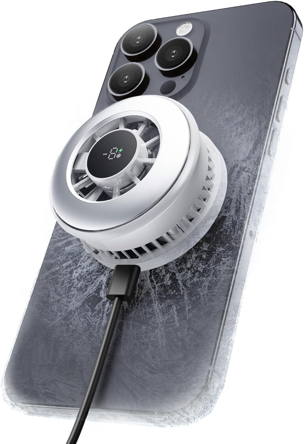 Magnetic Phone Cooler with Rechargeable Battery, LED Cooling Fan with Semiconductor Cooling,Phone Cooler with Power Display, Suitable for Phone Gaming Enthusiasts, Live Broadcast Crowd Network (white)