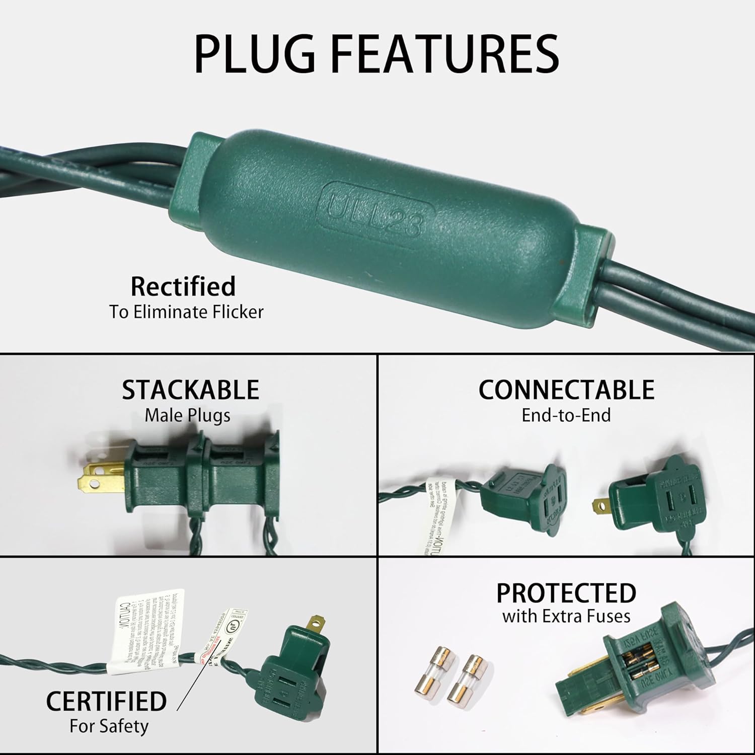 Connect 45 Sets on One Plug: Safely connect up to 45 sets end-to-end on one plug, so if one string lights burns out, the others remain on. Also, each string of lights has 2 extra fuses that can be replaced without fear of burnout or overload.