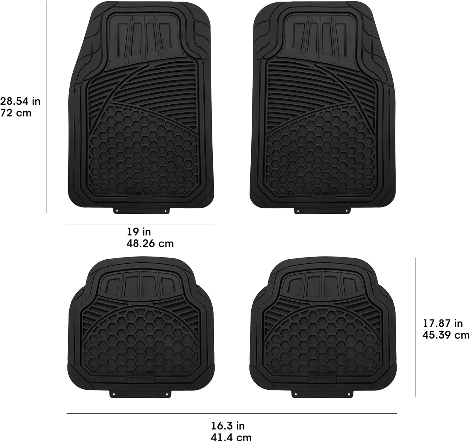 The trimmable Universal 4-Piece PVC floor mats are designed to fit for most automotive cars, SUV sedans, and Trucks. The trim to fit feature allows you to cut to size and customize the floor mats to your vehicle’s specifications