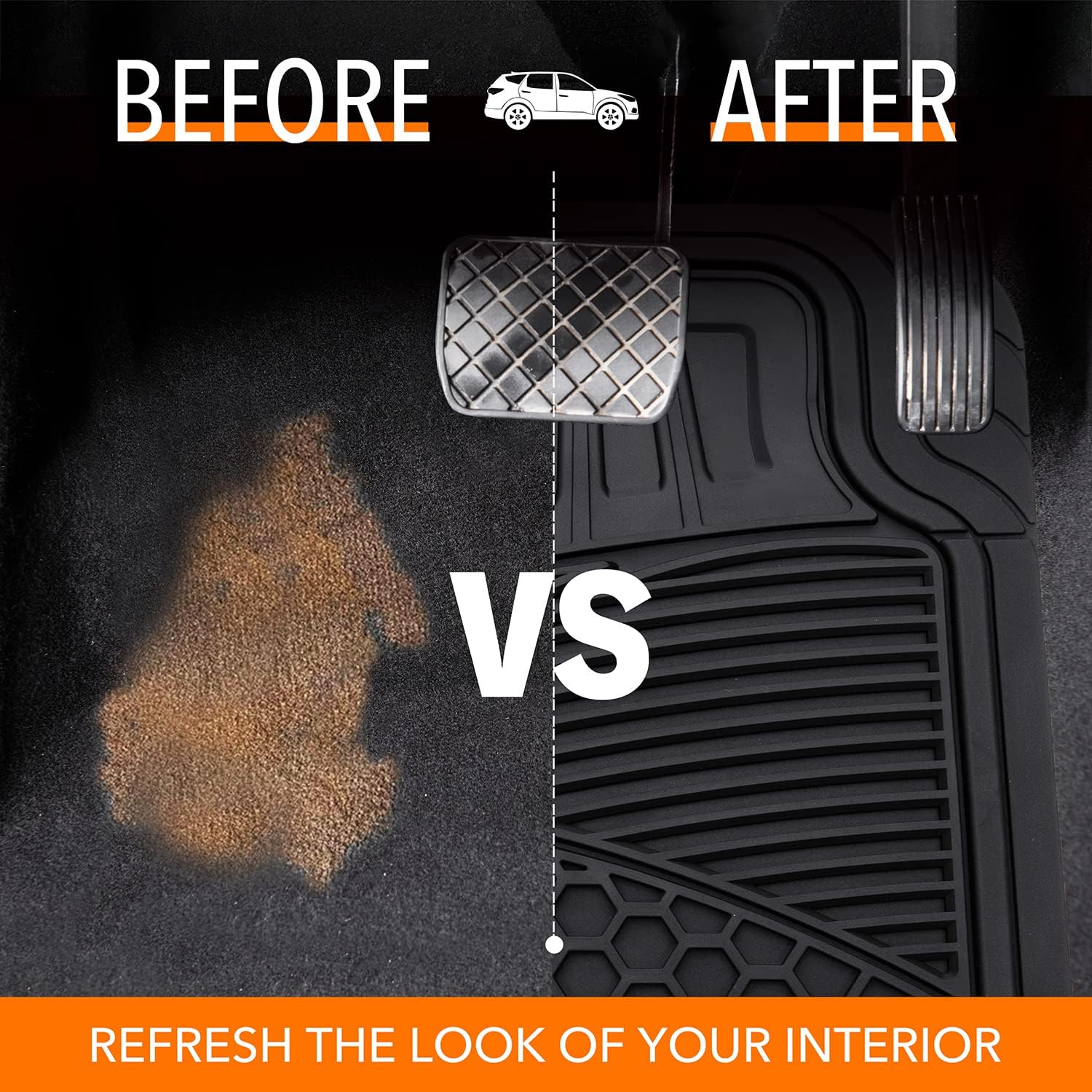 These heavy duty floor mats are made of thick PVC to provide maximum all-weather protection for your car’s interior without deforming or cracking, whether it’s snowy, rainy, or muddy outside.