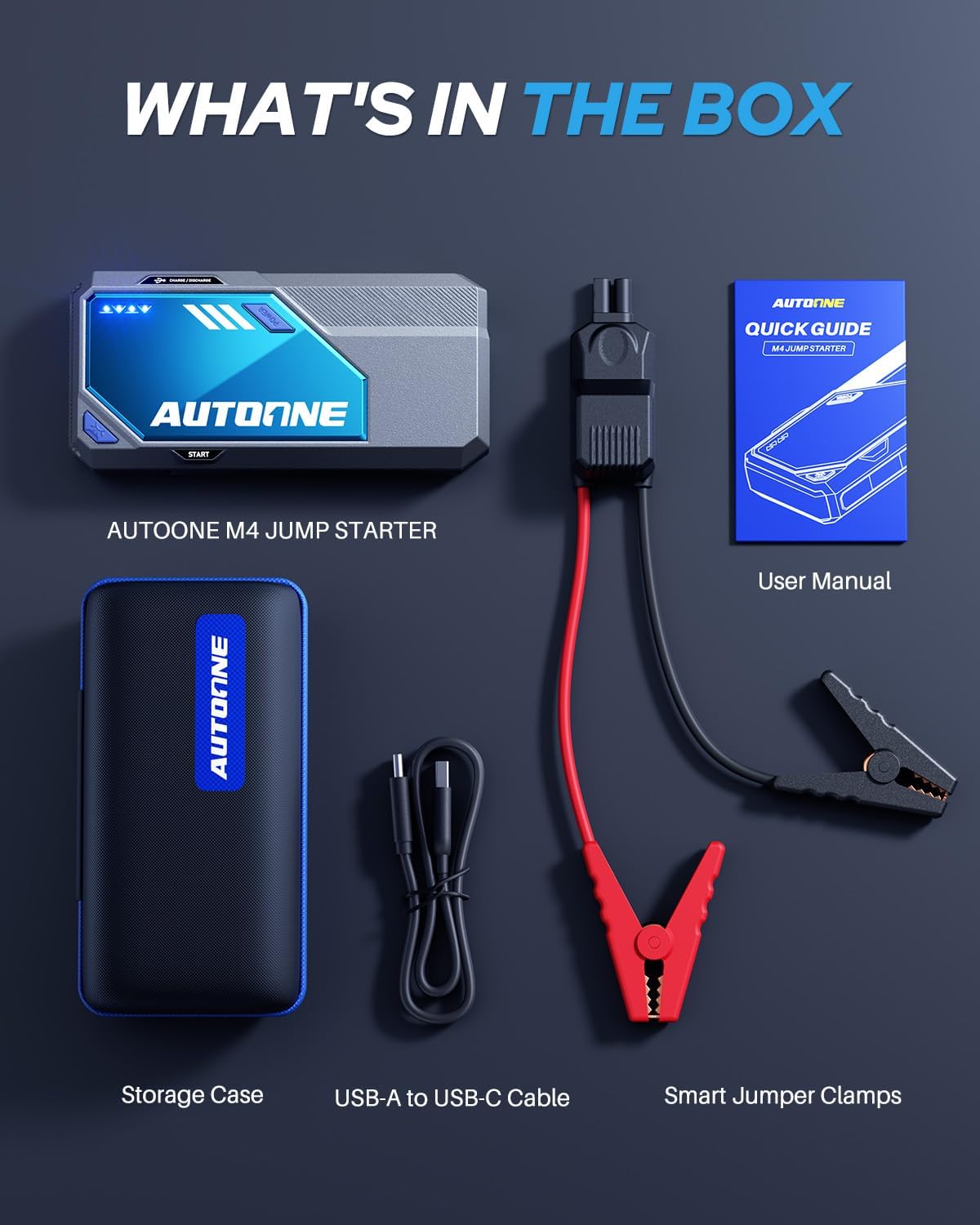 Bulit-in Force-Start Booster – No buttons needed—just clamp on and let the intelligent clamps detect exactly the current your vehicle needs, and M4 jump pack then delivers the perfect surge automatically for a foolproof jump every time.