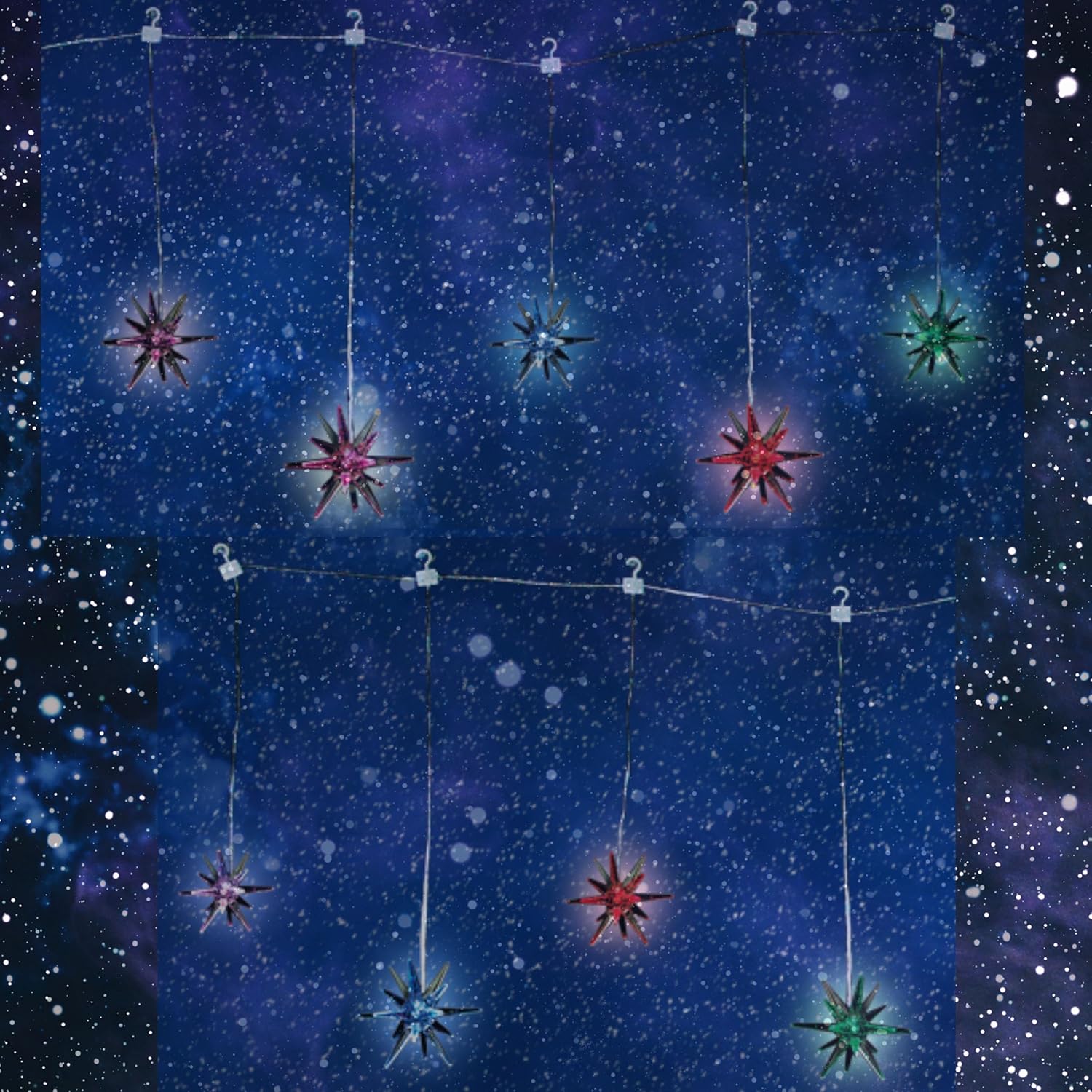 Multi starbursts color changing strand make an eye catching Xmas decoration in home or office. There is a star every 5″ so it is very effective in creating a look.
