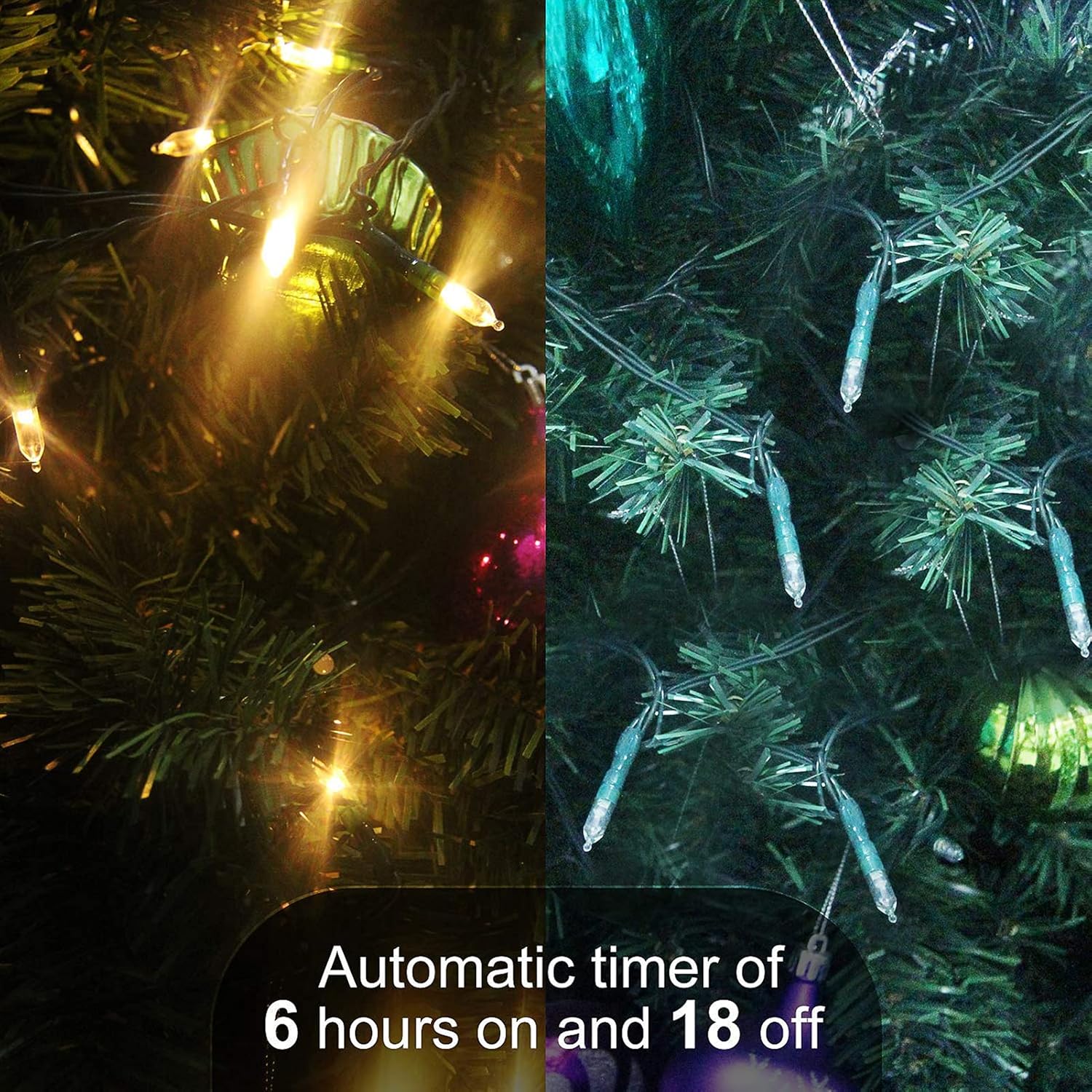 Timer Function: Built-in timer (6 hours ON and 18 hours OFF) will free your hands to turn on/off the Christmas lights and keep battery last as long as possible.This battery operated string lights is warm white, no harsh on eyes at night, comfortable and relaxing.