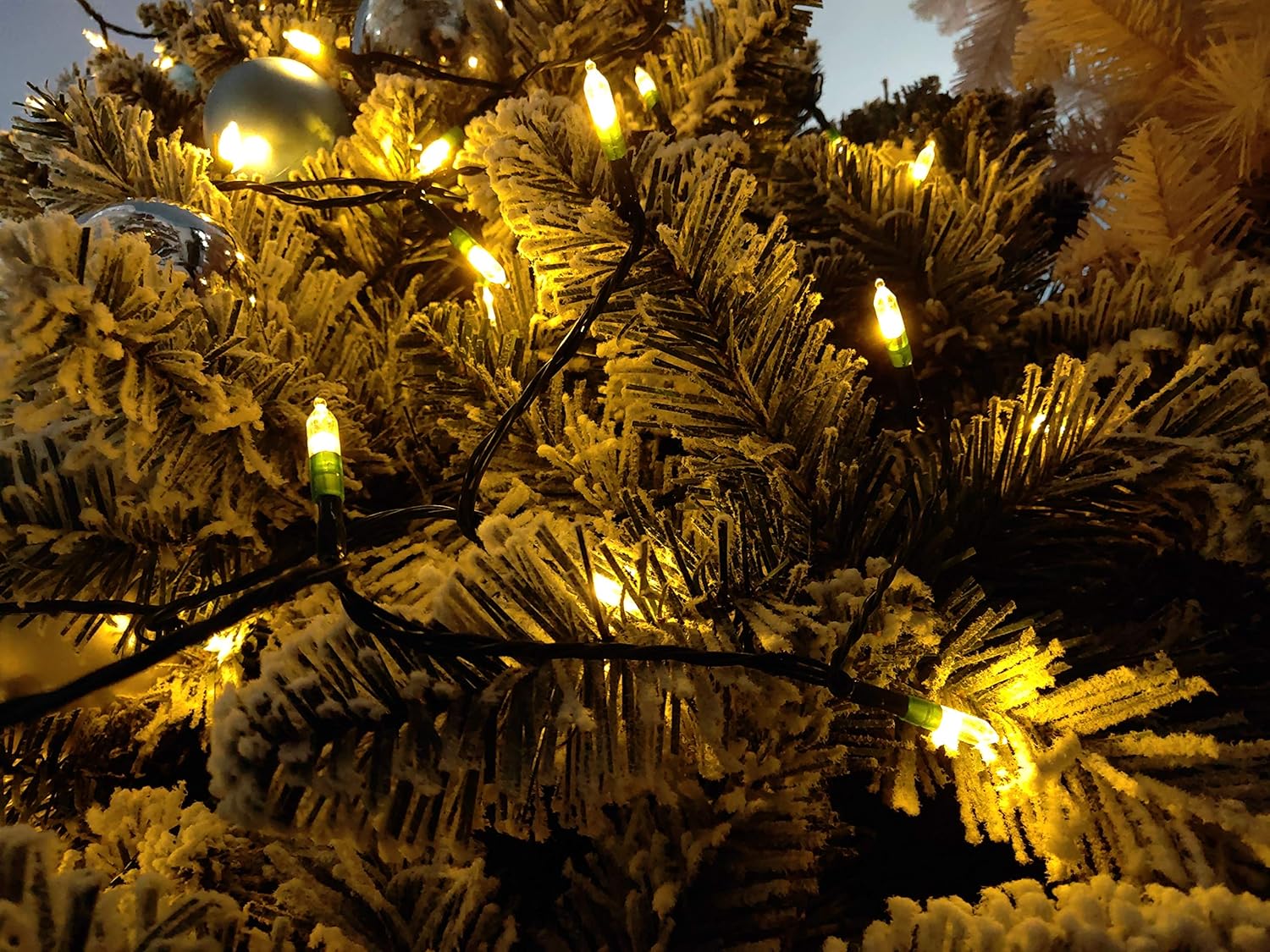 Clear bulbs on a green wire making them ideal to decorate Christmas tree, outdoor trees, wreaths and garland.