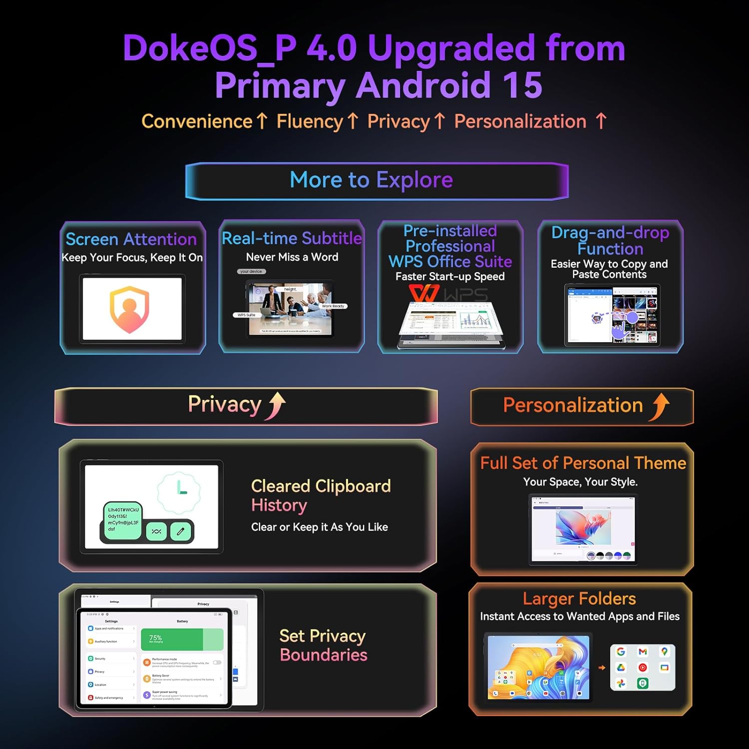 [8200mAh Battery+AI Power-saving] The 256GB tablet equipped with an 8200mAh battery and AI smart battery-saving technology, the system-level optimization achieves 72 hours of night standby with only 2% power consumption! Intelligently identifies the scenes of watching TV series/online classes/video chats, and dynamically adjusts the power consumption without lag.The standby mode can last for 30 days, and it can be turned on with one click with the minimalist power saving mode