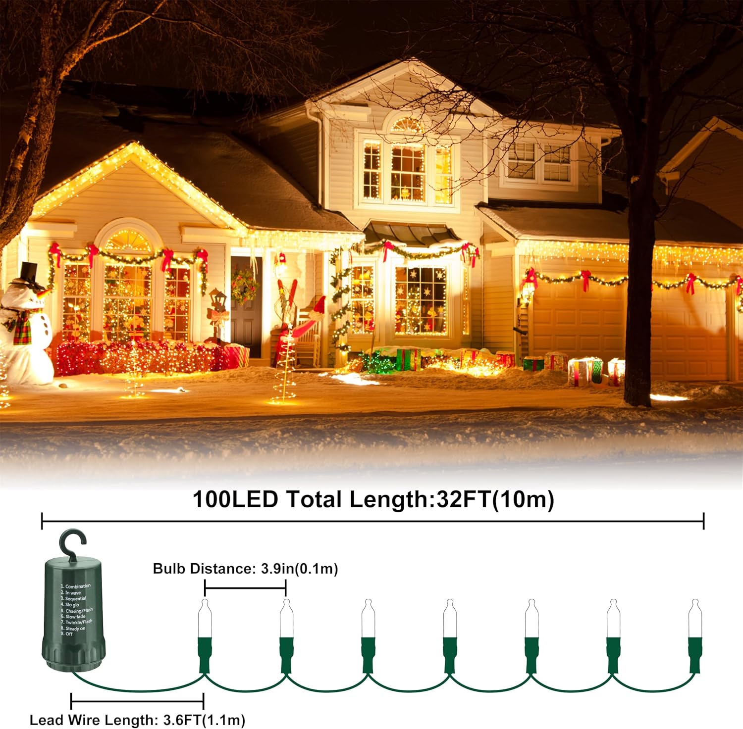 Mini Lightst:Each Christmas Light is Powered By 4 * AA Battery, 39.5 Feet,100LED Christmas Lights Glow a Warm White Lights , Allow You to Hang Anywhere, No Plug Needed, Energy-Saving and Low Consumption