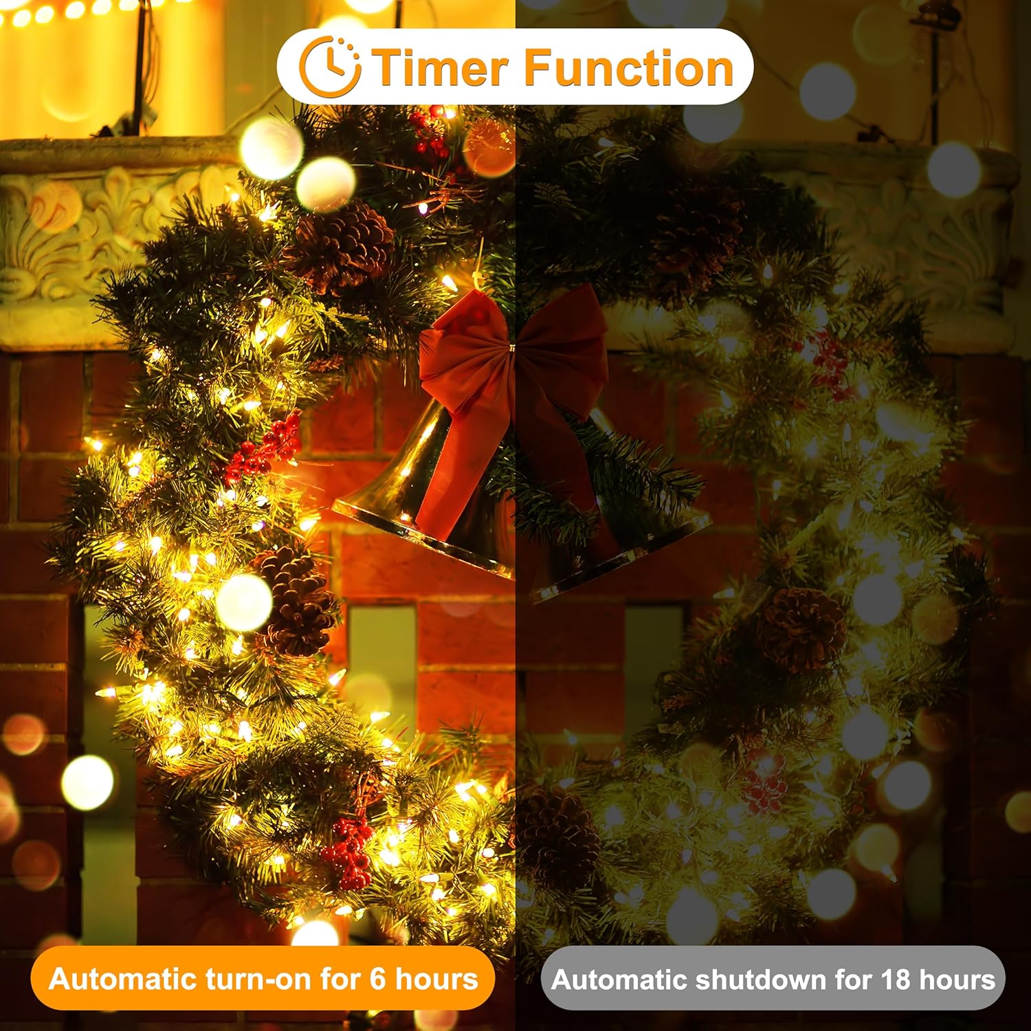 Timer Function: Built-In Timer (6 Hours On and 18 Hours Off) Will Free Your Hands to Turn On/Off The String Lights and Keep Battery Last As Long As Possible.