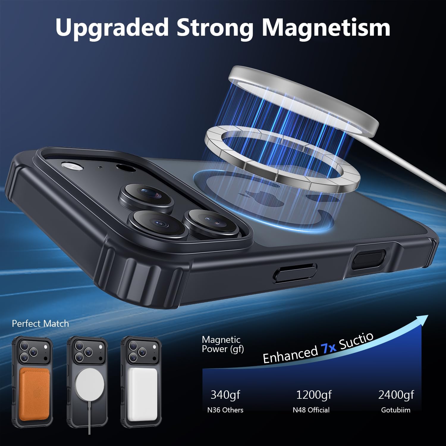 【Strong Magnetic Attraction】 The for iPhone 17 Pro Max case have built-in 38 super N52 magnets. Its magnetic attraction reaches 2400 gf, which is almost 7X stronger than ordinary, therefore it won’t fall off no matter how it shakes when you are charging. The case compatible with all wireless chargers including magsafe.
