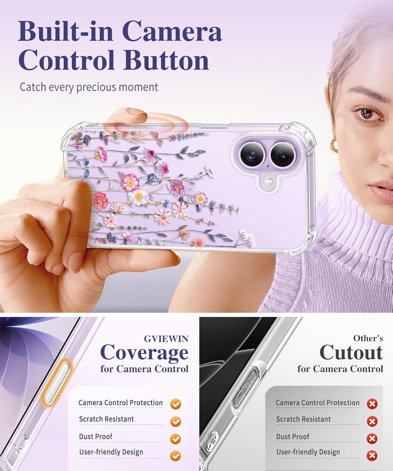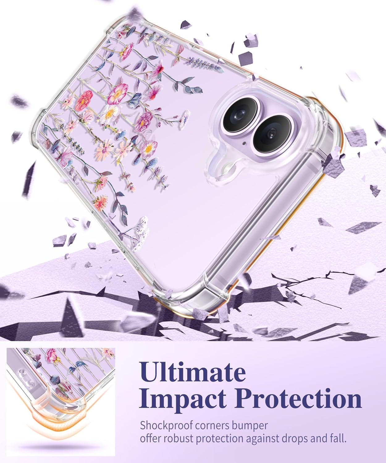 Crystal Clear Floral Pattern: This newly case for iPhone 17 uses advanced printing technology and a yellowing-resistant coating to keep the design vivid without fading, flaking, or yellowing. It showcases your phone’s original look with flawless transparency and elegant floral artistry