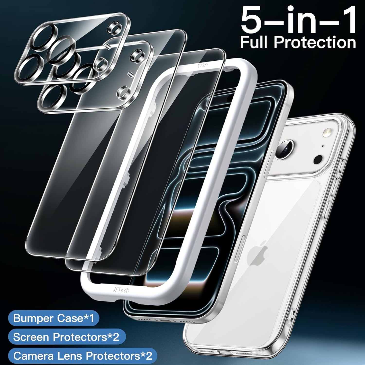 JETech 5 in 1 Case for iPhone 17 Pro 6.3-Inch with 2 Pack Each Tempered Glass Screen Protectors and Camera Lens Protectors, Non-Yellowing Shockproof Bumper Phone Cover