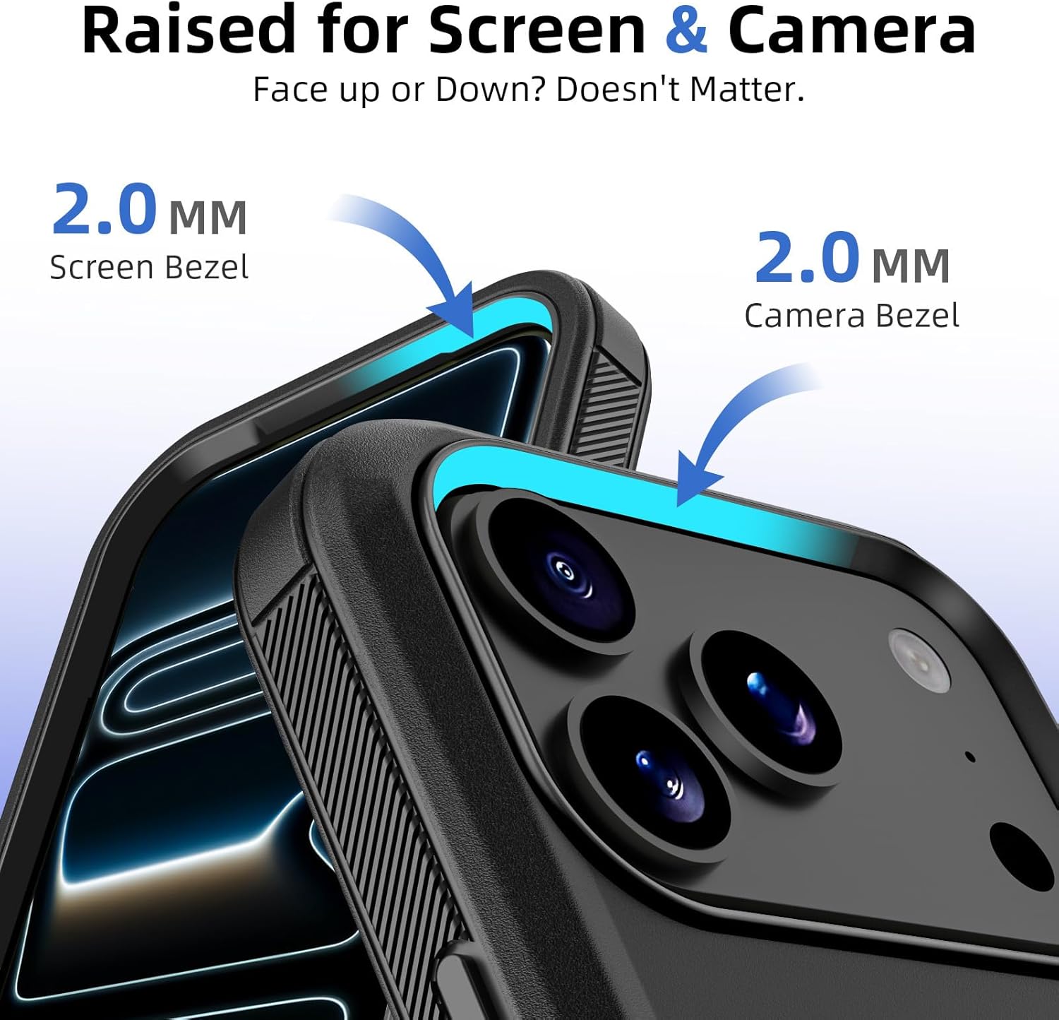 CAMERA & SCREEN SAFE ZONE: 2mm raised edges guard you phone’s camera bar and screen – survives face-down drops on gym lockers, dashboards, or dorm desks with iPhone 17 Pro Rugged Case