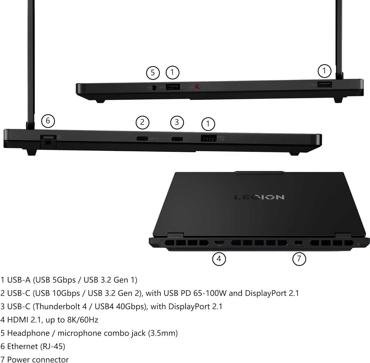 1x USB-C (USB 10Gbps / USB 3.2 Gen 2), with USB PD 65-100W and DisplayPort 2.1