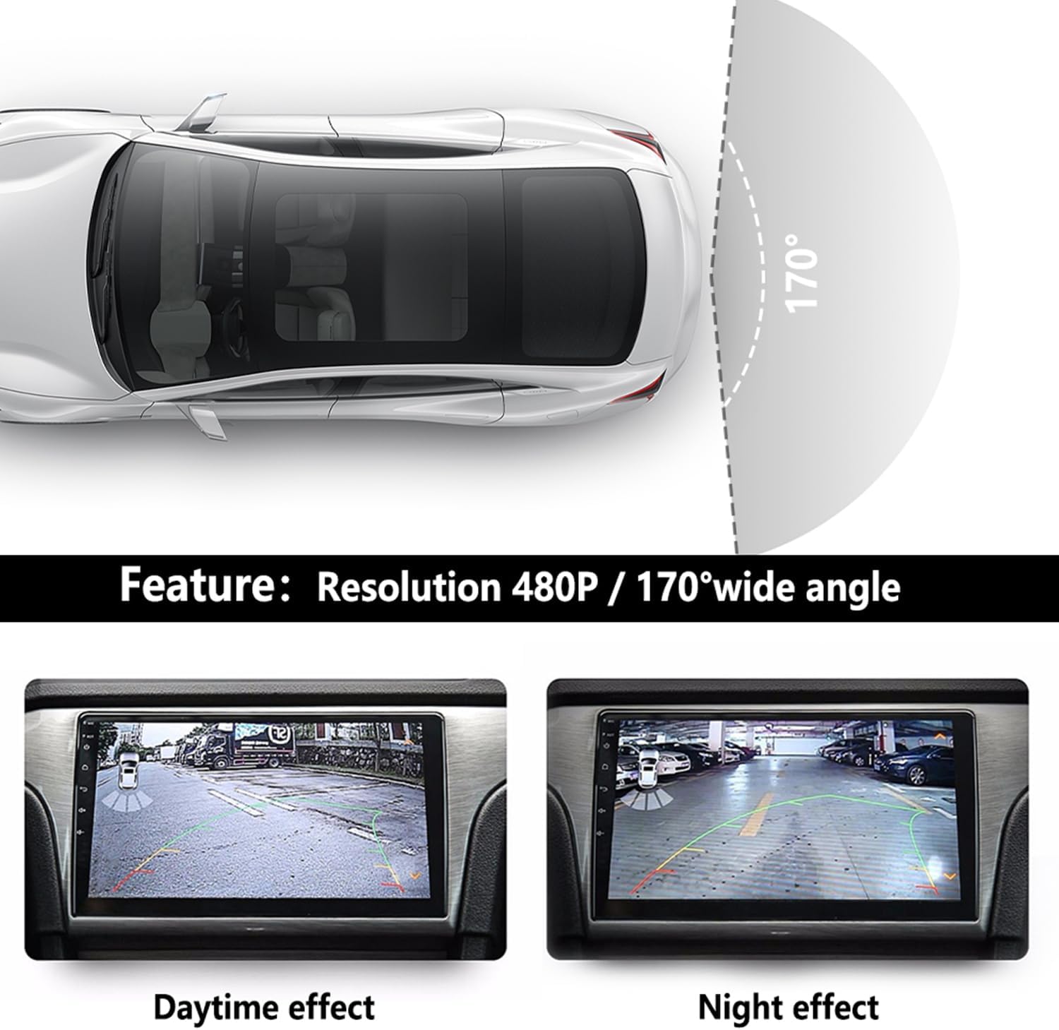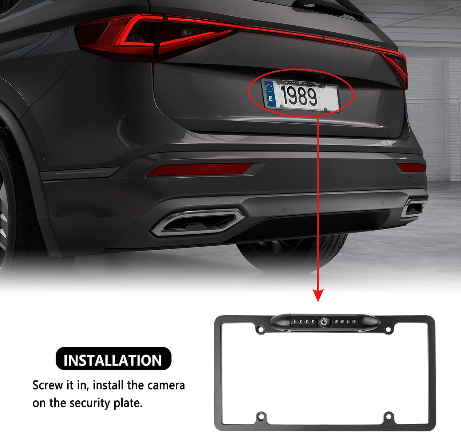 HD Night Vision+8 LED:Refuse difficult blind spot reversing! The license plate backup camera has 8 LED lights on its top, which can help you reverse more safely. Our reverse camera adopts HD optical lenses and a 170° wide angle lens design. Even in low light/night environments, clear and color accurate images can be obtained.