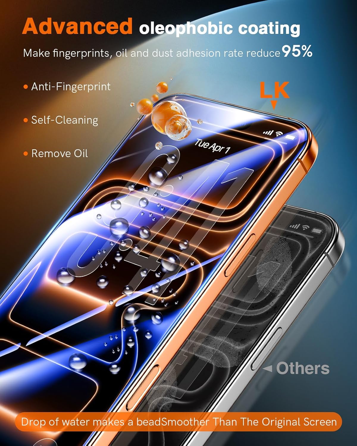 [Invisible Protection—3D Full Coverage Design] LK iPhone 17 Pro Max screen protector tempered glass uses 3D precision cutting technology offering seamless edge-to-edge fit, 0 gaps, that’s so precise, you’ll forget it’s even there. LK Perfectly designed for the iPhone 17 Pro Max, reduceing unpleasant gaps, reduces dust accumulation on the edges of the phone, etc. Create a beautiful screen with ingenuity.