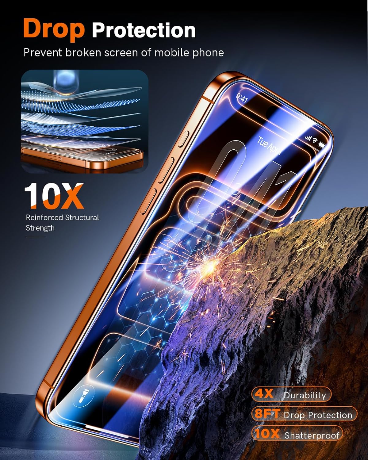 [9H Military-Grade Shatterproof] LK Screen Protector iPhone 17 Pro Max is made of 9H super strong military glass and had passed a series of rigorous tests, anti-drop, explosion-proof, fall-proof, providing the iPhone 17 Pro Max screen with excellent protection.