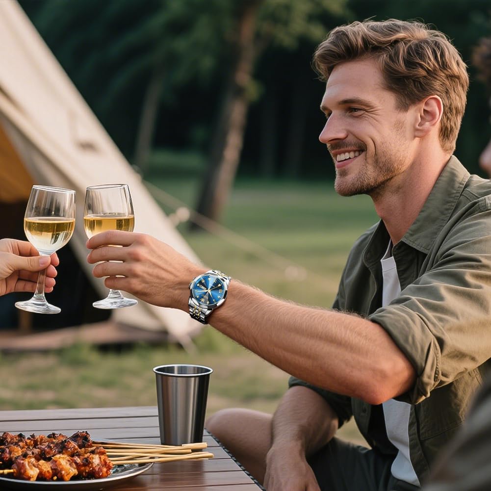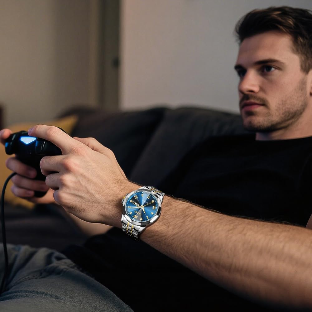 OLEVS Men’s Stainless Steel Watch, Big Face Easy to Read Analog Watches, Luxury Waterproof Date Dress Watches for Man