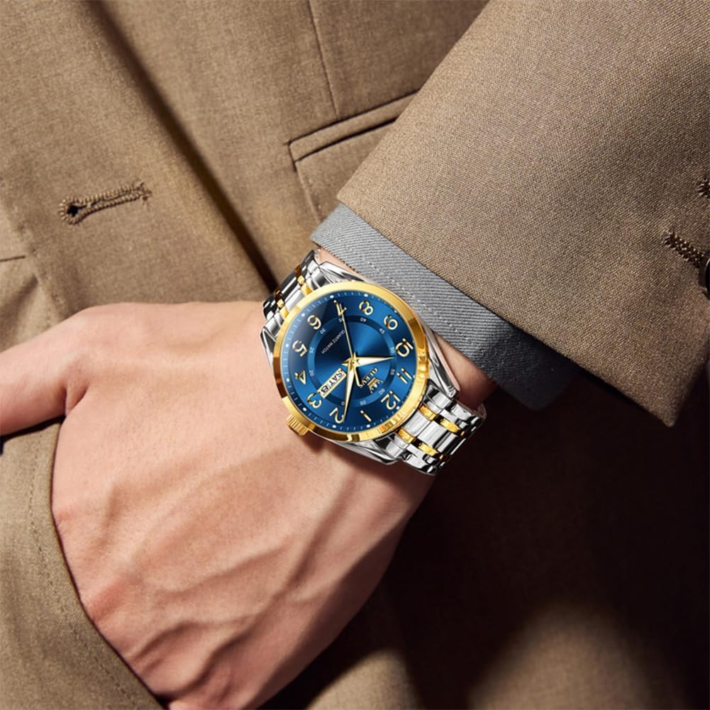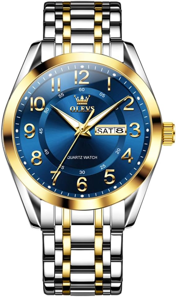 OLEVS Mens Watches Business Large Numer Easy to Read Quartz Watch Stainless Steel Waterproof Luminous Date Casual Male Watch