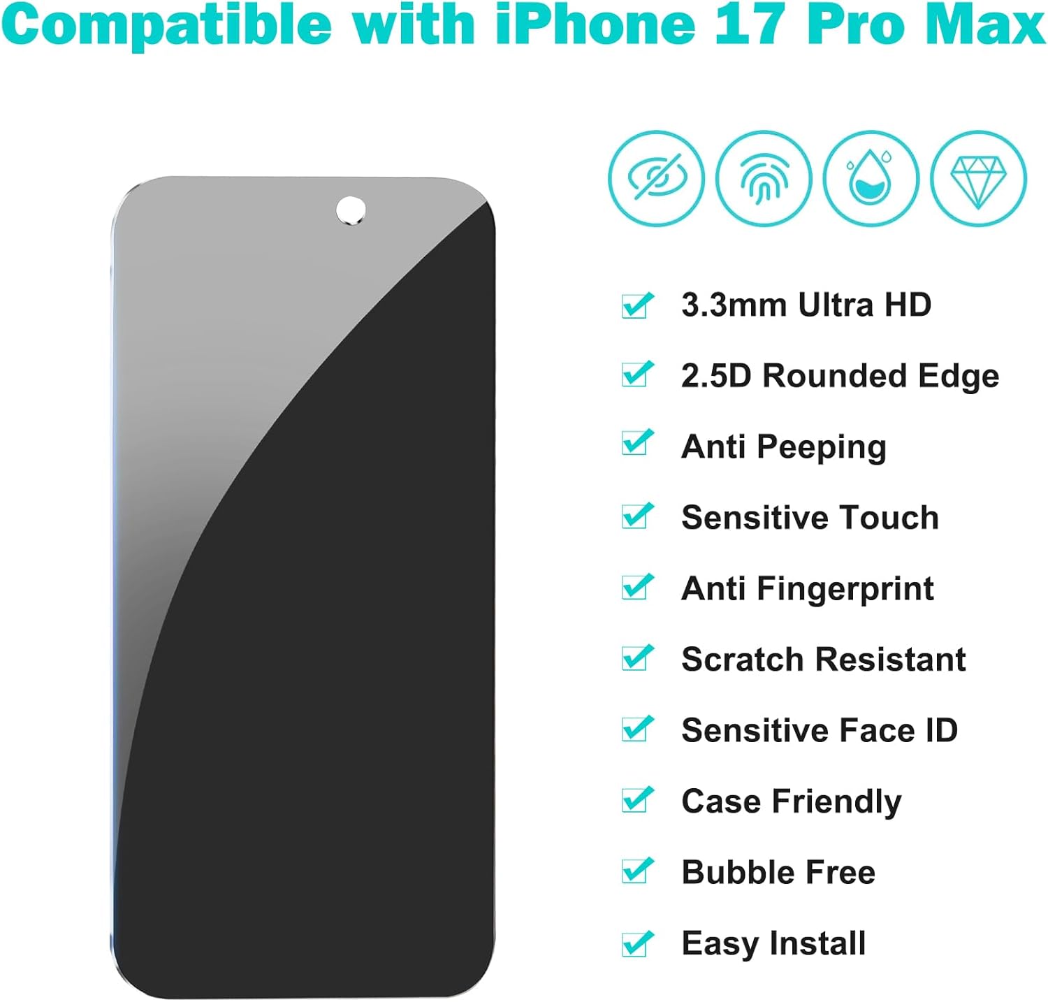 [Designed for iPhone 17 Pro Max] – PEHAEL’s screen protector is specially designed for the iPhone 17 Pro Max 6.9 inch. Include 3 privacy screen protectors, 3 tempered camera lens protectors, a precision installation frame, and a cleaning kit.
