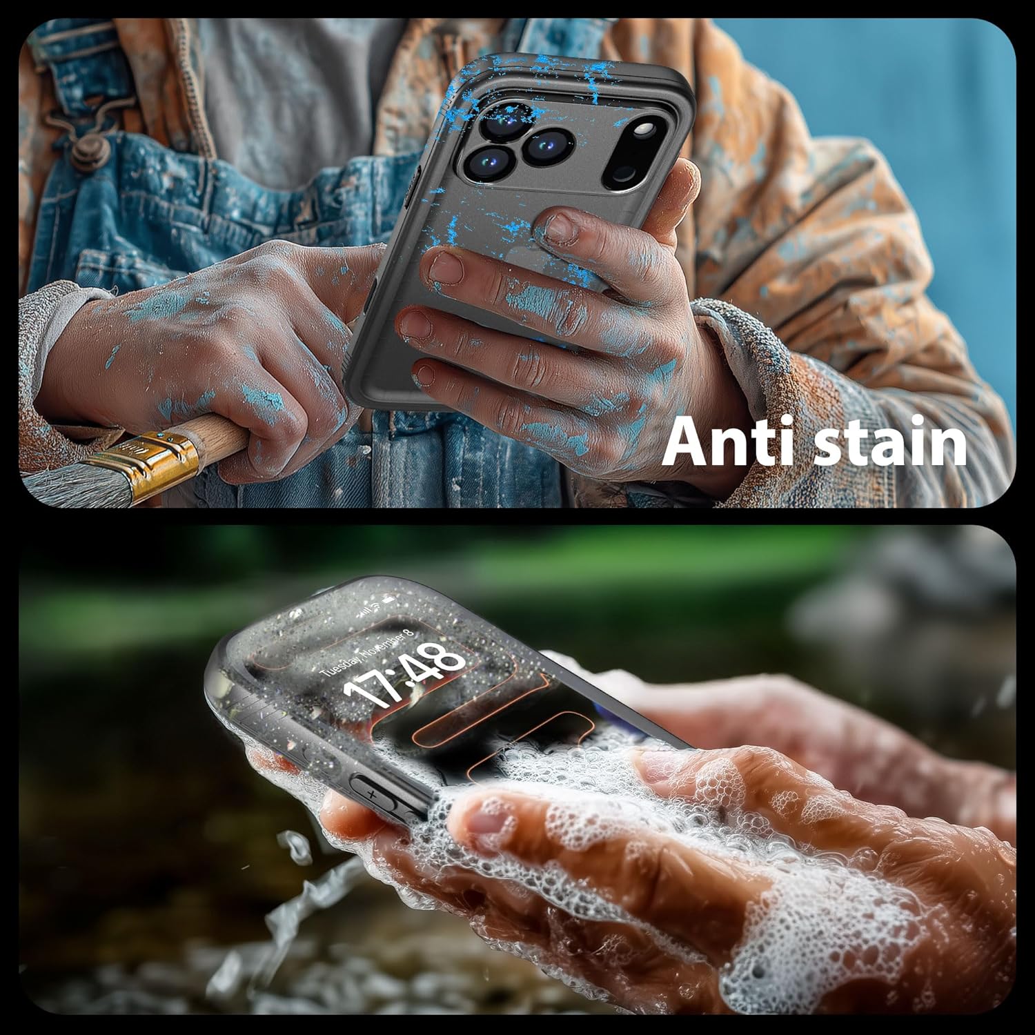 [For Outdoor Explorers]:Engineered for rugged adventures.Take your phone hiking through streams, skiing on fresh powder, camping in dewy meadows, or trail running on muddy paths. Built with strong protection against water immersion, dust, sand, and tough impacts