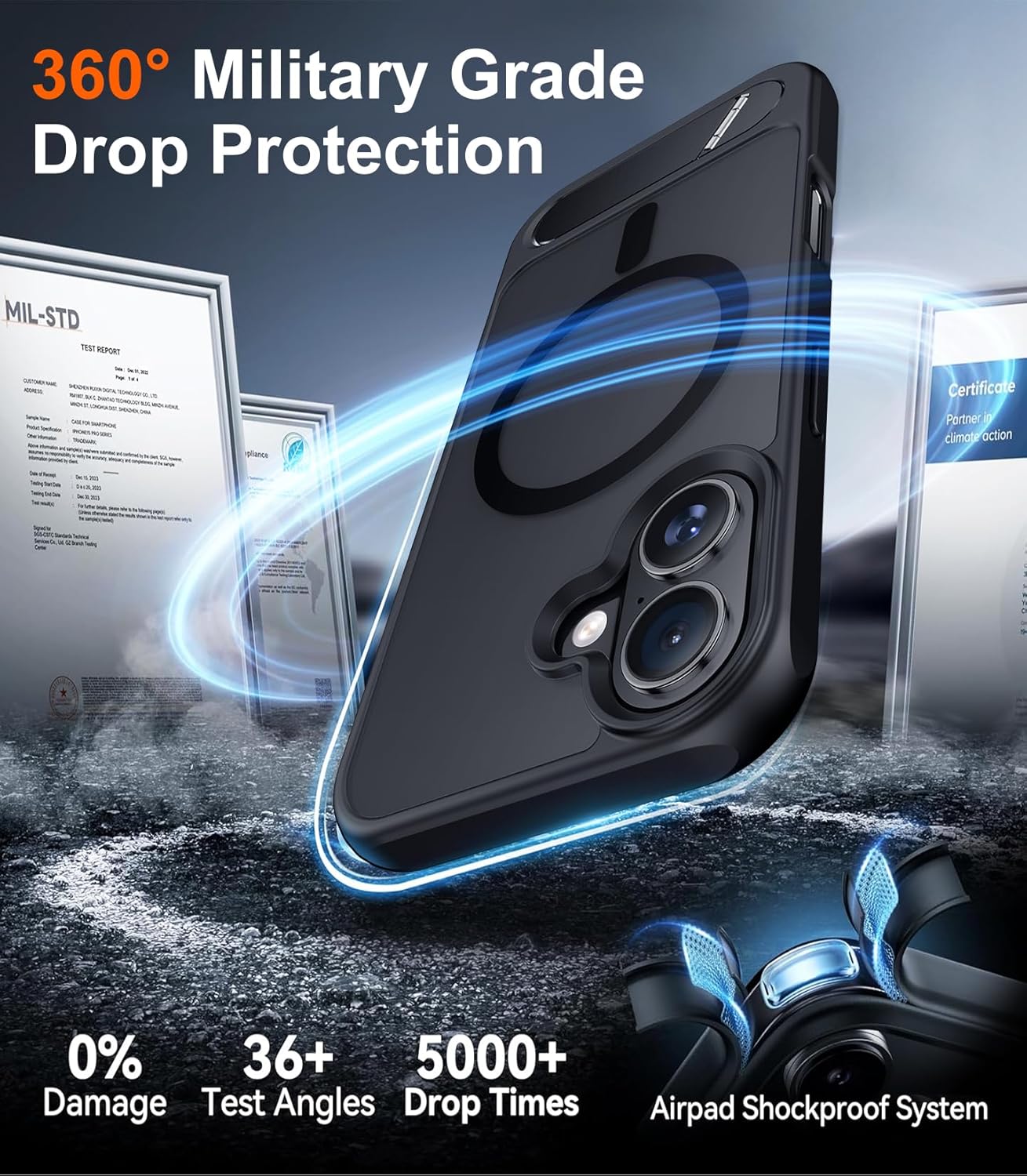 【Super Magnetic】 The built-in super Strong magnetic ring can be firmly connected to compatible with MagSafe accessories like Magnetic charger, wallet, battery pack, car mount etc. Perfectly aligned magnetic ring make wireless charging faster and safe, enjoy fast charging anytime, anywhere. Moreover, the embedded magnetic ring undergoes thousands of hours of testing under high pressure, it’s safe and never fall off or fracture