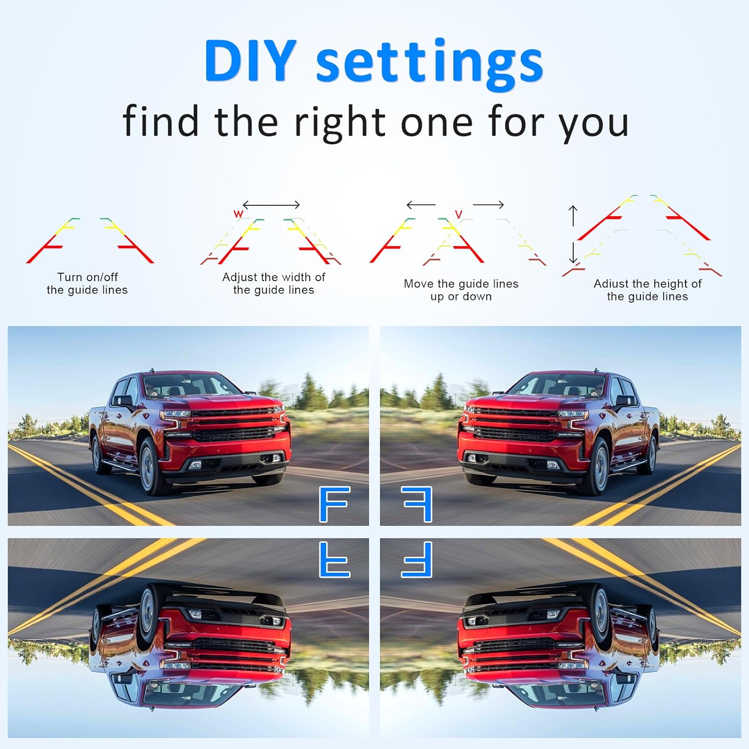 DIY PARKING LINES: Personalize your reversing experience with adjustable parking lines. Tailor the guides to fit various scenarios and vehicle setups, enhancing precision and making every maneuver effortless and accurate. Perfect for diverse parking needs and environments