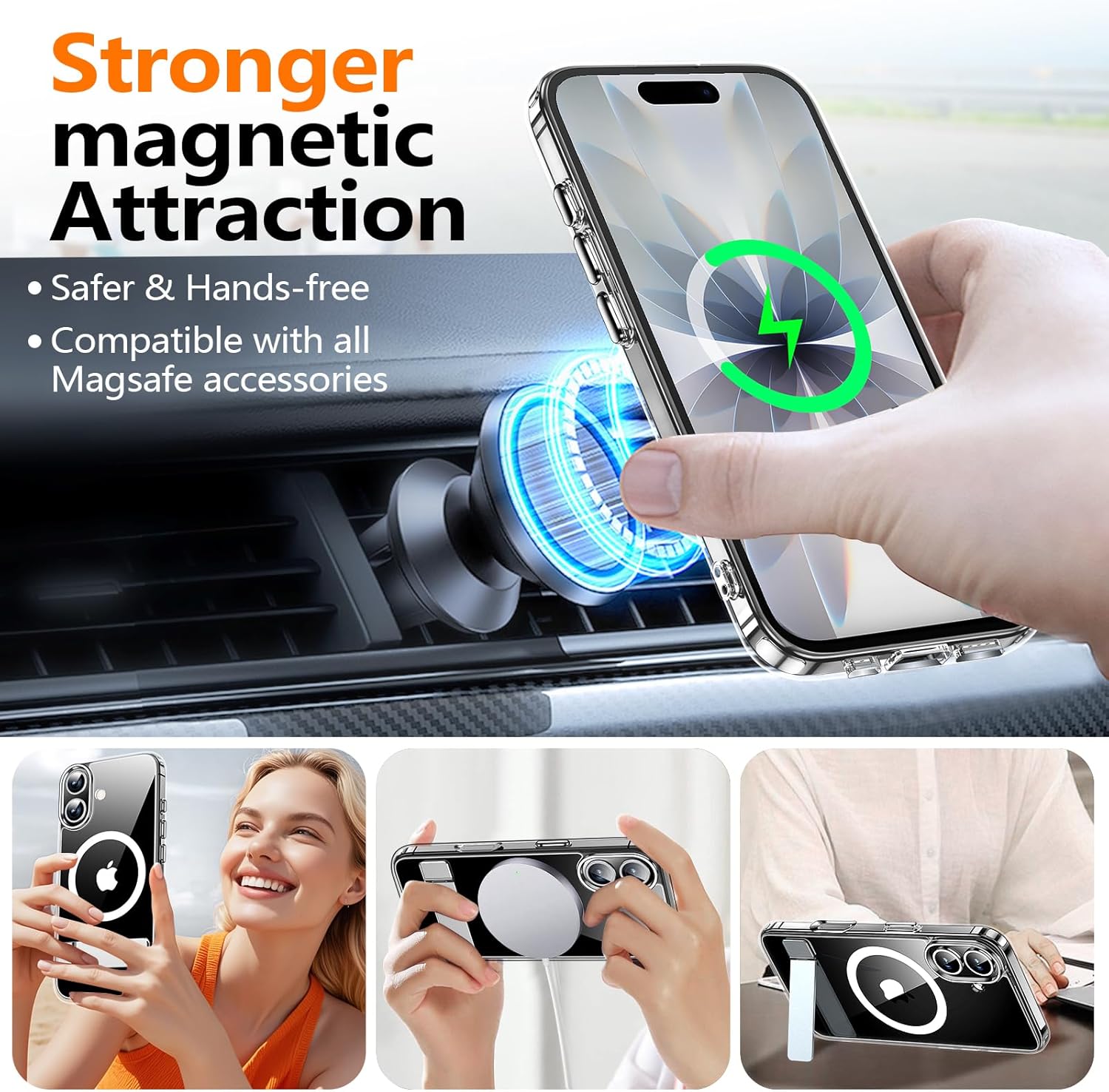 【Stronger Magnetic】The Cases for iPhone 17 is powerful built-in magnets with strong holding force,enable faster,easier place-and-go wireless charging and a secure lock on any magnetic accessory,such as wireless charger, magnetic car mount,magnetic battery bank,magnetic wallets,and so on.You don’t need to take an effort to move the protective case when charging.
